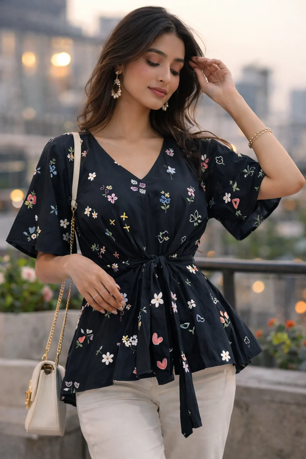 This versatile peplum top for women pairs effortlessly with jeans, skirts, or trousers to create a chic outfit perfect for casual outings, shopping trips, or evening gatherings.